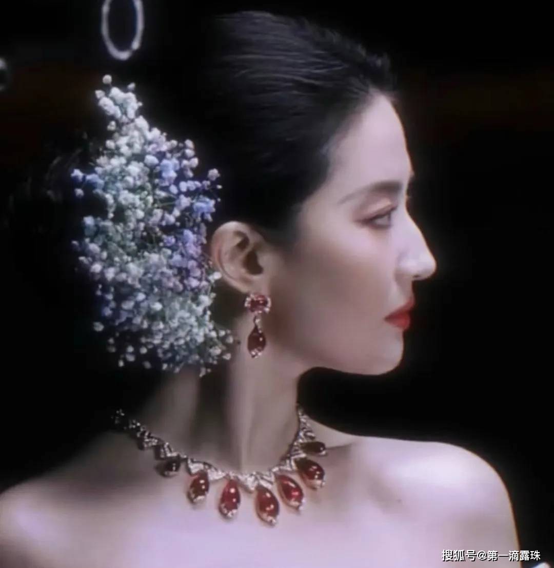 但就是这样的满天星簪花造型,却与“菲皇”的颜值气质相得益彰,大美女的美貌加上簪花头饰造型,竟让网友齐齐忽视了刘亦菲脖子上戴的价值1.2亿元的硕大宝格丽红宝石项链。