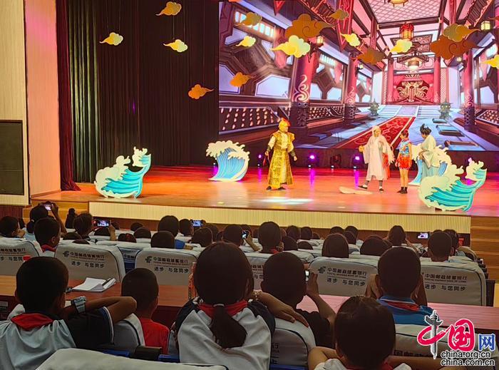 9月9日,童心悦读·大型中华优秀传统文化经典神话剧《哪吒闹海》在温宿县图书馆上演,儿童剧演员们表演了他们精心编排的儿童剧,以贴近儿童趣味的方式诠释了经典传统神话故事。