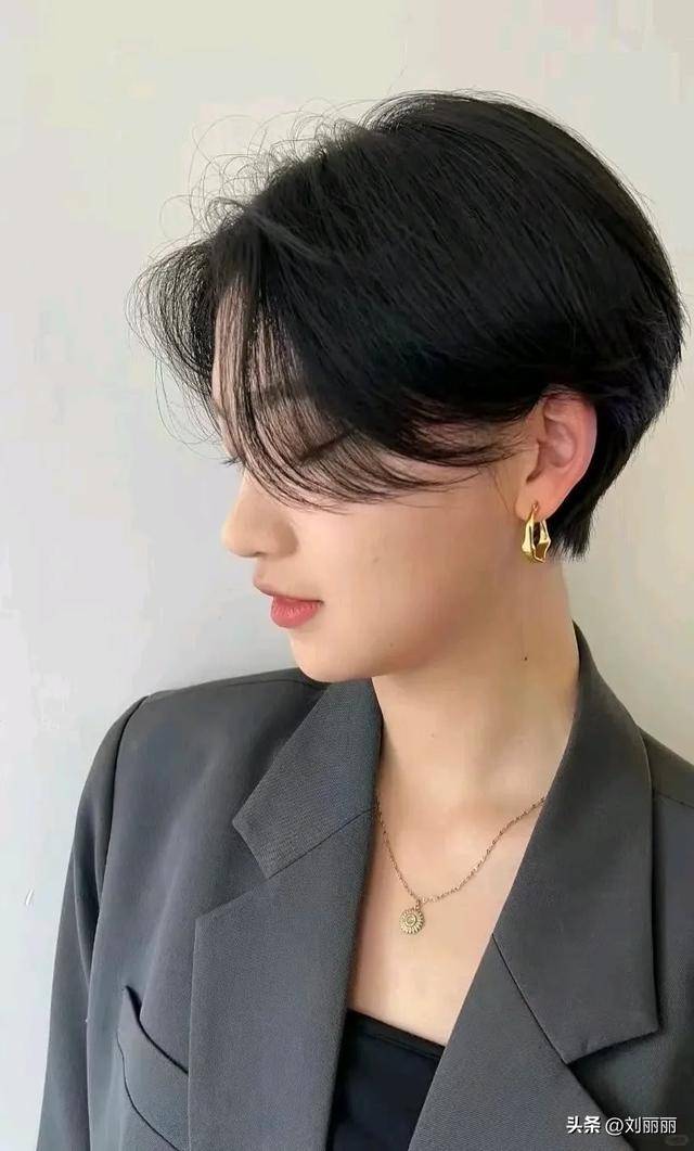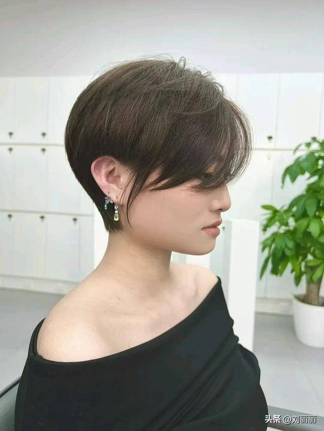 于职场女性而言,一款利落的短发是无声的“专业战袍”。侧分的剪裁,让线条沿着脸部轮廓自然延伸,既保留了短发的清爽感,又通过微妙的弧度增添了女性的柔美感。